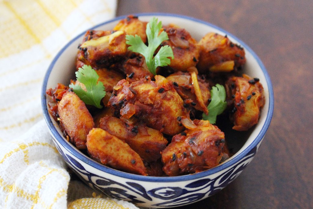 This simple Indian dish, Arbi Tamatar wali, may be enjoyed with anything and is tangy, spicy, and covered in rich tomato sauce.